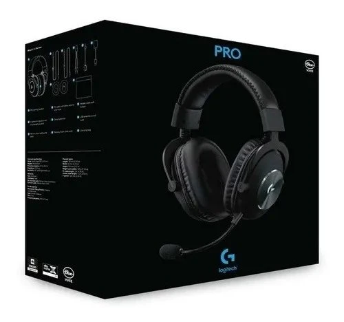 Dimensiones Longitud: 138 mm Ancho: 94 mm Altura: 195 mm Peso: 320 g Longitud de cable de PC: 2 m Divisor de PC: 120 mm Especificaciones técnicas Audífono Transductor: Malla híbrida PRO-G de 50 mm Imán: Neodimio Respuesta de frecuencia: 20 Hz - 20 kHz Impedancia: 32 ohmios Sensibilidad: 91,7 dB SPL a 1 mW y 1 cm Materiales: Horquilla: Aluminio Diadema: acero Almohadillas de audífonos y diadema: Piel sintética y espuma viscoelástica Micrófono Pro Patrón de captación de micrófono: Cardioide (unidireccional) Tipo: Condensador de electreto Tamaño: 6 mm Respuesta de frecuencia: 100 Hz-10 KHz Compatibilidad: PC con puerto USB Windows® 7 o posterior Conexión a Internet para descarga de software opcional: Las funciones avanzadas requieren un puerto USB y el software Logitech G HUB. Descargable desde LogitechG.com/GHUB En la Caja Audífonos con micrófono PRO para juegos Almohadillas de piel sintética y espuma viscoelástica Tarjeta de sonido USB externa Micrófono extraíble Cable de 2 m con volumen y silenciamiento integrados Divisor en Y para puertos de micrófono y audífonos Documentación del usuario